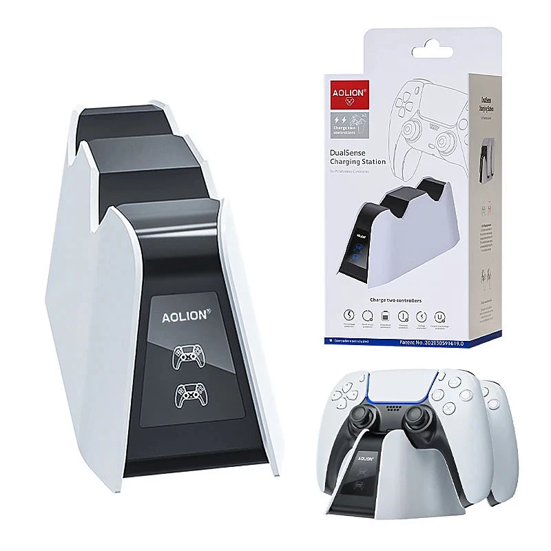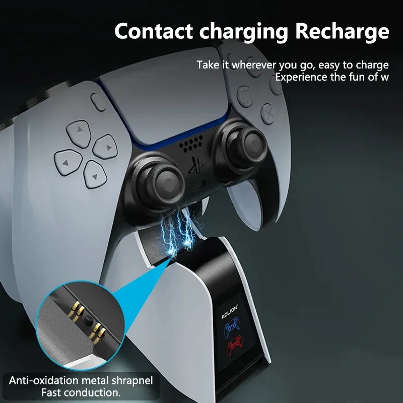 Aolion Dual Fast Charger for Playstation 5 Controller Charger Station Charging Cradle Dock Station With LED for PS5 Gamepads