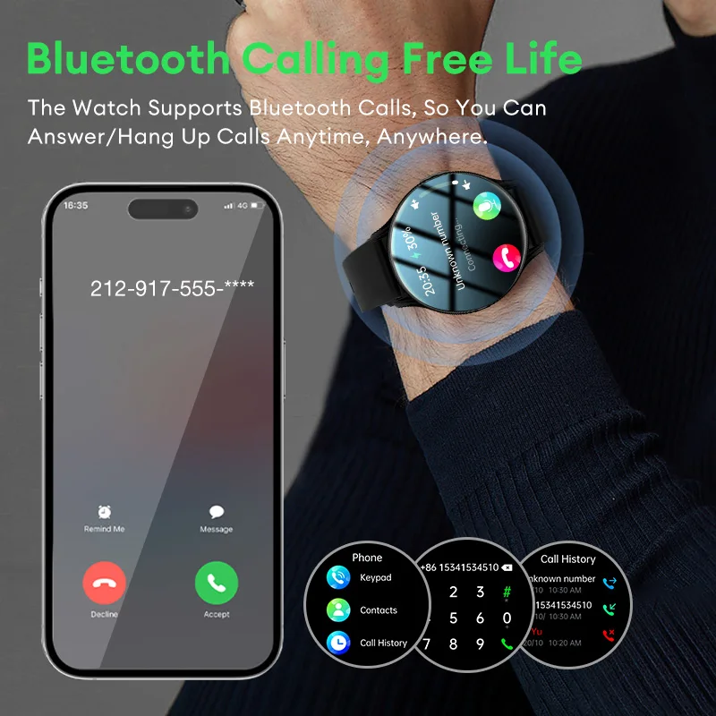 🔥【Multi-function Digital Watch】1.43 inch touch screen, easier, smoother, more stylish! The Bluetooth watch contains 5 dials available to choose from along with 100 other dials in the app. You can also create your own watch face with your own photos. It can be any photo, such as family photos, pets, etc. The screen will light up every time you raise your wrist, swipe to adjust the brightness more user friendly design.