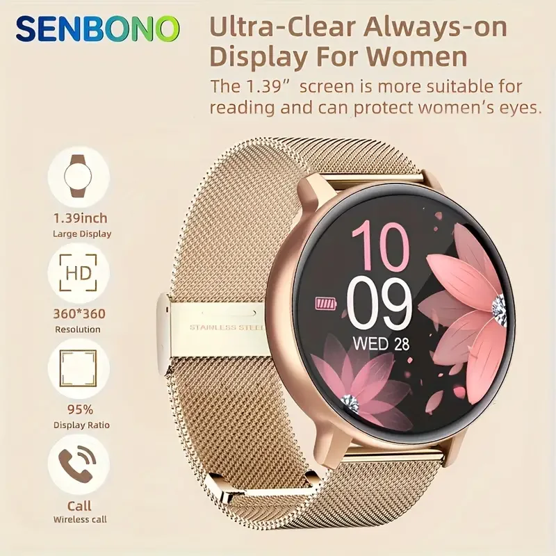 1. Screen: 1.39 inches "360*360" IPS full-screen touch display