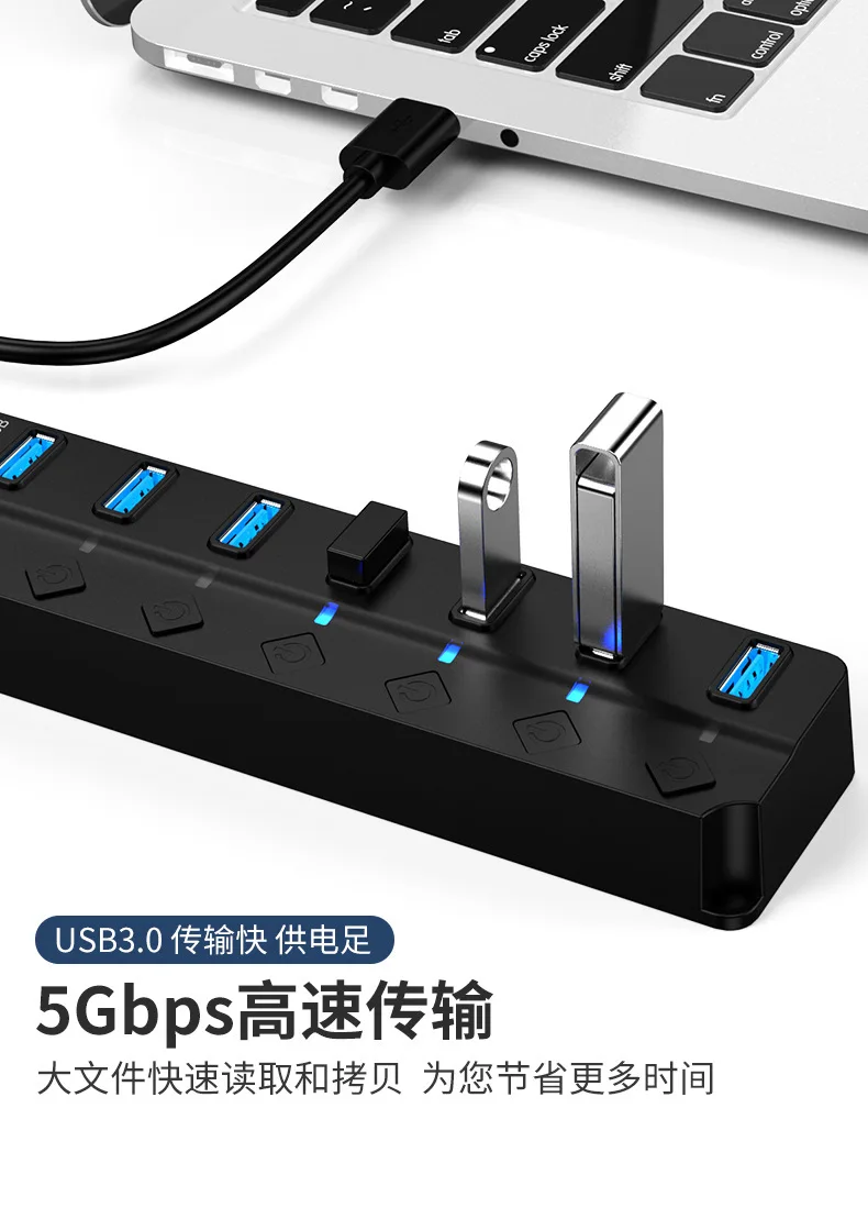 5Gbps data transfer speed. Each port is equipped with USB 3.0/2.0 technology, capable of transferring data at speeds of up to 5 gbps/480Mbps fast enough to transfer HD movies in seconds.