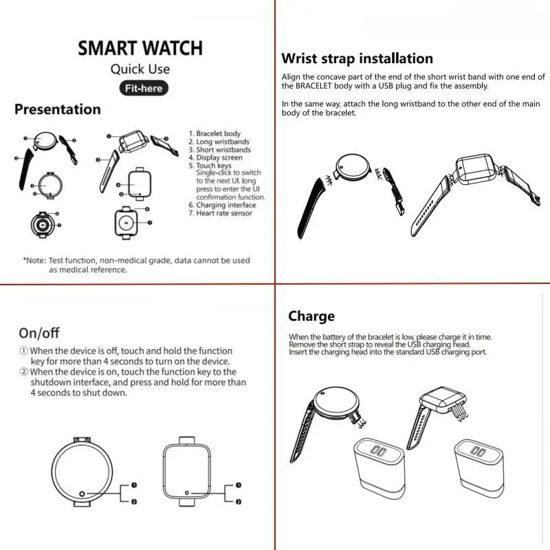 Please do not compared to hospital equipment about reading,it is NOT a medical device! –Before using, scan the QR code on the manual to download the app and connect it to the watch with APP.